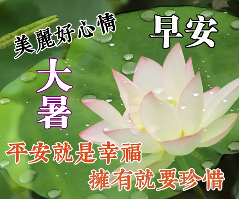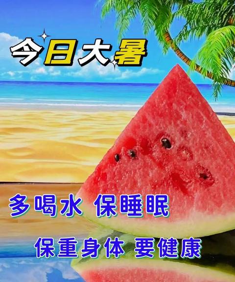 6、今日大暑,好运非你莫"暑",好运连连;快乐乐不思"暑",天天开心;幸福"暑"起大旗,生活美满;平安"暑"起大指,健康无恙;祝福"暑"我最棒,祝愿你天天快乐,日日幸福!