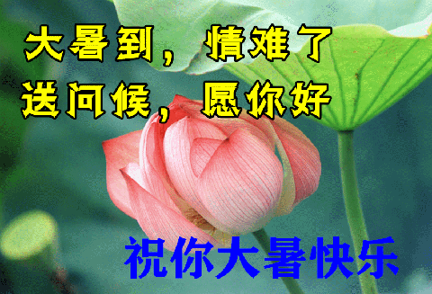 4、让花香送去我的问候,愿你好运暑于你;托知了带去我的思念,愿快乐暑于你;让清风捎去我的情意,愿成功暑于你;让短信带去我的祝福,愿幸福暑于你。大暑翩翩,愿你的心情如阳光般灿烂,愿美好日子与你永远相伴!